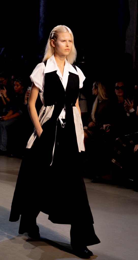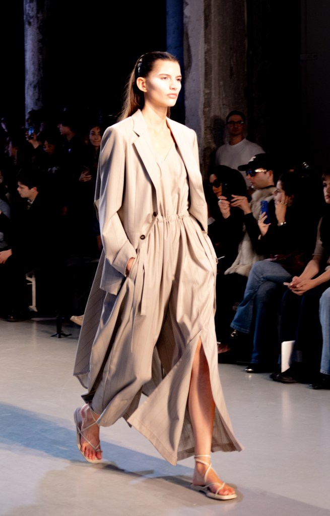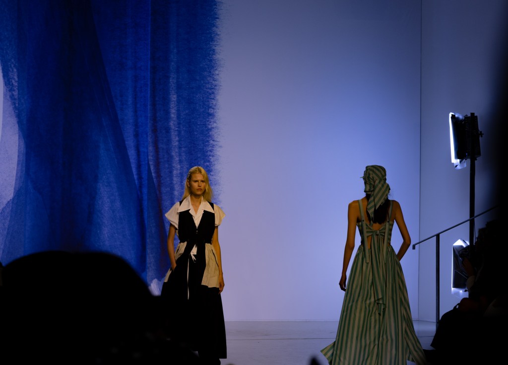 Après le défilé, Mitsuru Nishizaki nous confie avoir longuement étudié les codes marins afin de créer des pièces fortes sans trahir l’ADN de la maison : « Nous voulions des vêtements ancrés dans notre vestiaire, mais capables de fonctionner dans la vie réelle, même quand l’été devient extrême. » Un défi relevé avec une collection pensée pour le quotidien, sans renoncer à la sophistication japonaise.