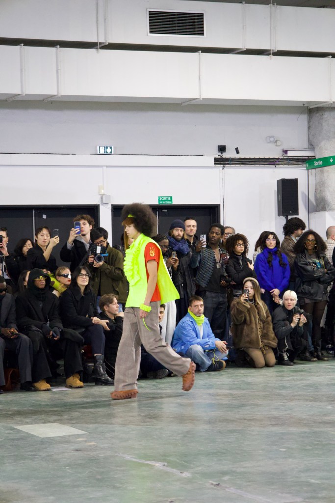 Il n’y a pas de doute : Walter Van Beirendonck voit la vie en couleur, même en automne ou en hiver. Lors de la présentation de sa collection 2026/2027, le fondateur et directeur artistique de la maison a montré comment envisager l’hiver sans grise mine. Intitulé « Scare the Crow / Scarecrow », ce défilé se déploie comme une métaphore d’un vestiaire où imaginaire et politique se croisent. Walter Van Beirendonck présente ce défilé comme une réflexion sur la jeunesse et l’identité.